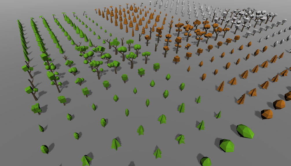 Low poly trees pack$5+$5+https://schema.org/InStockusdmasomasoContains 399 trees 3 seasons - ready for lightmaps mobile friendly exported as .fbxName a fair price:$Add to cartAdd to wishlist New wishlistShareShare on XShare on Facebook Copy linkCopy product URL